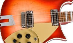 Das Modell 660 hat einen bestechend gemaserten Ahornkorpus, dessen Form mit dem auffallenden "Crescent Wave" Cutaway auf ein innovatives Design aus den 1950ern zurückgeht. Das Palisandergriffbrett hat wunderschöne, dreieckige Perlmutteinlagen. Der Korpus ist mit einem aufwändigen schwarz-weißen "Checkerboard" Binding, der Hals hingegen komplett weiß eingefasst. Die Elektronik der 660 entspricht exakt den Spezifikationen der Vintage Reissue Serie mit den Vintage Reissue Single Coil Tonabnehmern von Rickenbacker.