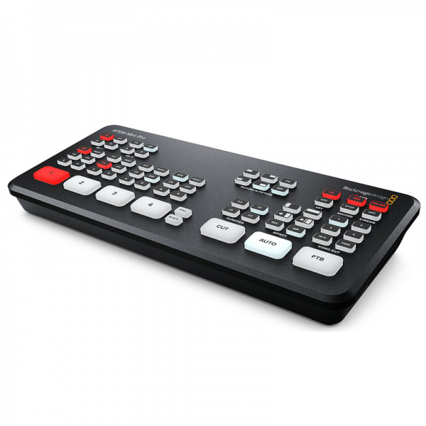 Der ATEM Mini Pro von Blackmagic Design ist fix eingerichtet und bedienfreundlich. Seine Features umfassen vier skalierbare HDMI-Eingänge, einen USB-Webcam-Ausgang, einen HDMI-Ausgang und einen Fairlight Audiomixer mit EQ und Dynamiktools, einen DVE-Prozessor für Bild-im-Bild-Darstellungen, Übergangseffekte, einen Greenscreen-Chromakeyer und einen 20 Standbilder fassenden Media Pool für Titel. Obendrein gibt es die ATEM Software Control kostenfrei dazu.