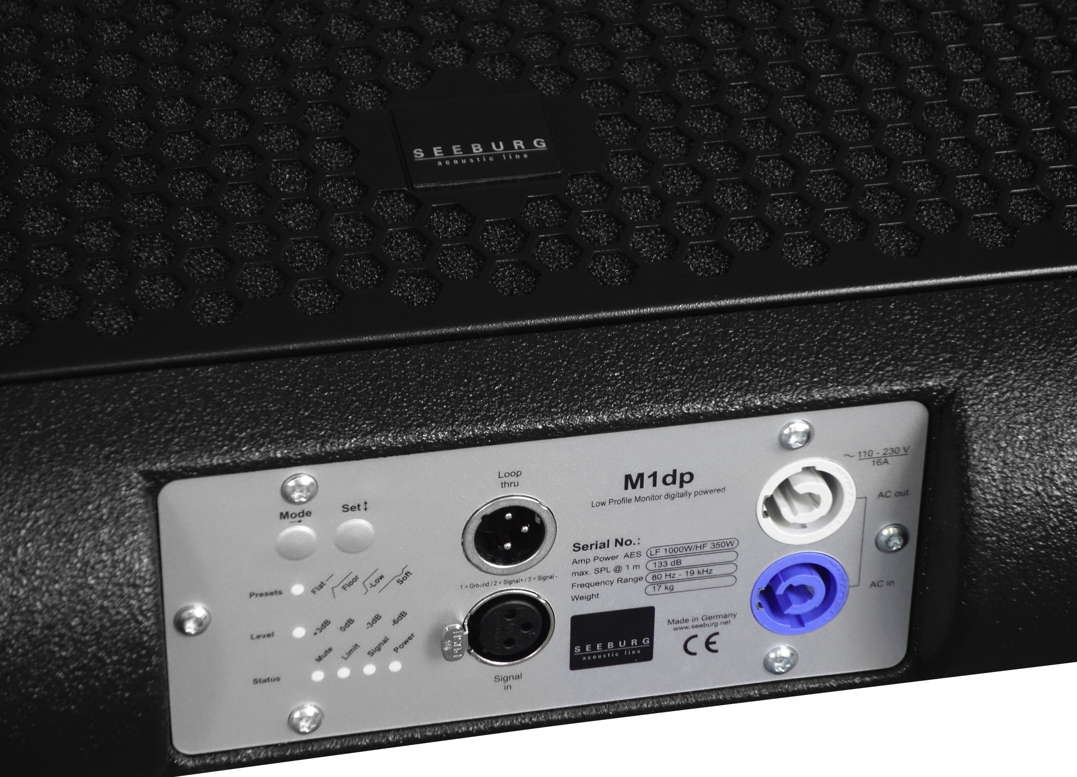 Ultraflacher Bühnenmonitor mit koaxial angeordneter 12 Neodym / 1.4 Neodym Bestückung und integrierter Verstärkerelekronik mit DSP. Vier praxisgerechte Presets, hohe Leistungsreserven, homogene Schallverteilung und geringe Rückkopplungsneigung machen den M 1 zu einem Werkzeug, welches die Arbeit des Tontechnikers sehr erleichtert. In Verbindung mit dem Flugbügel kann der M 1 auch als Downfill oder universelles Beschallungssystem eingesetzt werden.
